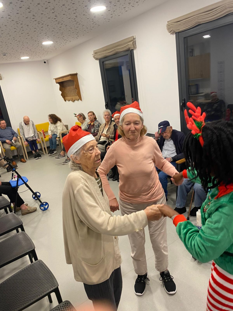 Música, decoración navideña y un ambiente cálido acompañaron este encuentro, en el que residentes y equipo compartieron risas, conversaciones y momentos de alegría en comunidad.