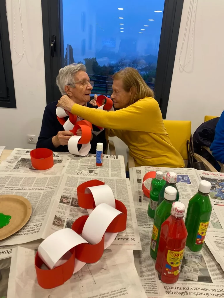 Durante el taller de Navidad, nuestros residentes participaron activamente en la elaboración de manualidades y adornos navideños, trabajando con diferentes materiales y dando rienda suelta a la creatividad. Estas sesiones se convirtieron en espacios de concentración, conversación y disfrute compartido.